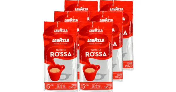 Röstkaffee Lavazza Rossa gemahlen bietet einen ausgewogenen Kaffeegenuss mit einer harmonischen Mischung aus Arabica- und Robustabohnen. Dieser fein gemahlene Kaffee eignet sich ideal für die Zubereitung in klassischen Kaffeemaschinen und verspricht ein angenehmes Aroma. Perfekt für den Start in den Tag oder gemütliche Kaffeepausen. – Zutaten: Mischung aus geröstetem und gemahlenem Kaffee. Zutaten: Mischung aus geröstetem und gemahlenem Kaffee.
