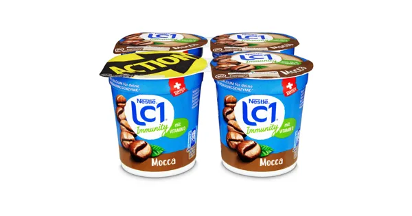 Teilentrahmtes Joghurt mild mit coffeinfreiem Kaffee-Extrakt, (3.4 % Fett im Milchanteil) Sauermilch mit Kaffee. Koffeinfrei. Verdauung gut, alles gut – Zutaten: VOLLMILCH, Zucker, MAGERMILCH, MILCHPROTEINE, Milchsäurebakterien (davon Lactobacillus johnsonii), coffeinfreier Kaffee-Extrakt, mageres Kakaopulver, Wachsmaisstärke, natürliches Aroma. Zutaten: VOLLMILCH, Zucker, MAGERMILCH, MILCHPROTEINE, Milchsäurebakterien (davon Lactobacillus johnsonii), coffeinfreier Kaffee-Extrakt, mageres Kakaopulver, Wachsmaisstärke, natürliches Aroma.