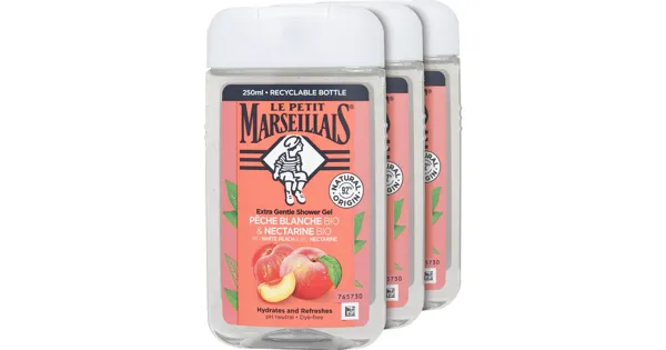 Tauche ein in die sommerliche Frische mit dem Duschgel von Le Petit Marseillais! Der verlockende Duft dieser fruchtigen Kombination von weissen Pfirsichen und Nektarinen, entführt deine Sinne in...