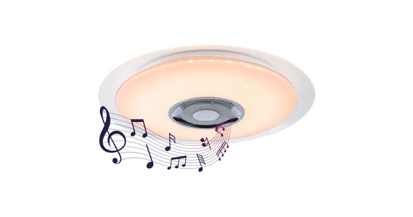 Die Musikleuchte Puvi ist mit hochwertigen K5-Kristallen und einem dezenten Sparkle-Dekor auf dem opalen Acrylglas ausgestattet, das die Deckenleuchte zum Funkeln bringt. Mit einem Durchmesser von 47,5 cm ist das kleinste Modell der Serie ideal für Räume unter 15 qm. Vor allem aber punktet die Leuchte mit einer Reihe faszinierender Zusatzfeatures. So ist sie mit einem leistungsstarken Lautsprecher ausgestattet, der per Bluetooth-Verbindung Musik vom Smartphone abspielt. Mit der eigens entwickelten App können Lichtfarbe und Helligkeit der Leuchte vom Smartphone aus gesteuert werden. Die leistungsstarken RGBW-LEDs können alle Spektralfarben wiedergeben, aber auch weisses Licht in verschiedenen Intensitäten und Farbtemperaturen erzeugen. Die Leuchte wird mit einer Fernbedienung geliefert, die den vollen Funktionsumfang der Smartphone-App unterstützt.