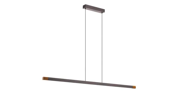 Die LED Pendelleuchte Lisciana von EGLO bietet mit ihrem modernen und geradlinigen Design eine passende Beleuchtung für das Esszimmer. Sie besteht aus einem Aluminium-Profil in Dunkelbraun, welches mit Abschlusskappen aus Gummiholz in Walnuss-Optik kombiniert wurde.