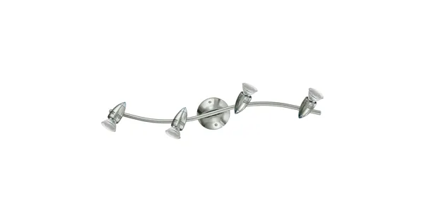 LED Spot Magnum StahlDieser vierköpfige Spot der Serie MAGNUM LED ist aus nickel-mattem sowie verchromtem Stahl gefertigt. Er ist mit vier GU10-LED-Leuchtmitteln, welche für warmweisses Licht sorgen, ausgestattet.