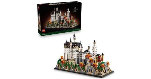 Mit diesem kreativen Bastelset aus der LEGO Architecture Serie lässt sich das berühmte Schloss Neuschwanstein Stein für Stein als detailreiches LEGO Schloss nachbauen. Es ist ein anspruchsvolles Konstruktionsspielzeug und gleichzeitig eine stilvolle Dekoration für alle, die sich für Modellbau, Architektur und Geschichte interessieren. Das 3.455-teilige Set richtet sich an Erwachsene, die beim Bauen abschalten und ihre Begeisterung für Design und Baukunst ausleben möchten. Entdecke viele spannende Elemente wie Türme, Treppen, Giebeldächer und kleine Innenräume, die an klassische LEGO Burgen erinnern. Die austauschbaren Blätter der Bäume ermöglichen es, das Schloss in einer sommerlichen oder herbstlichen Landschaft darzustellen. Unterstützt wirst du durch die LEGO Builder App mit einem intuitiven 3D-Bauerlebnis. Dieses besondere Spielzeug für Erwachsene eignet sich als dekoratives Ausstellungsstück ebenso wie als durchdachte Geschenkidee für Fans von LEGO für Erwachsene, Architektur oder kreativem Spielzeug. Ob als Sammlung, LEGO Deko oder als Projekt für ruhige Stunden, dieser Baukasten bringt Geschichte und Baukultur in deine vier Wände. .