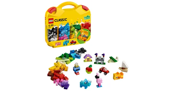 Sorg für Ordnung bei deinen LEGO® Steinen mit diesem cleveren, robusten LEGO Classic Bausteine Starterkoffer. In diesen gelben Koffer passen deine bunten Steine, aus denen du süsse Tiere, coole Fahrzeuge, gemütliche Häuser und alles, was dir sonst so einfällt, bauen kannst! Und nach dem Spielen legst du die Steine einfach zurück in ihre Fächer, so wie du magst. Fertig!