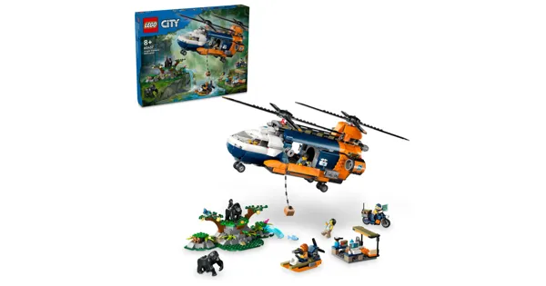 Überrasche junge Abenteurer mit dem LEGO® City Dschungelforscher-Hubschrauber (60437). Das Abenteuer-Spielset für Kinder ab 8 Jahren beinhaltet einen wirklichkeitsgetreuen Spielzeughubschrauber mit 2 synchronisierten Hauptrotoren, 2 Frachträumen und funktionierender Seilwinde. Darüber hinaus laden ein Motorrad, ein Sumpfboot, ein Basislager, 5 Abenteurer-Minifiguren und 3 Spielzeug-Gorillas (darunter ein Baby-Gorilla) zu vielen fantasievollen Rollenspielen und Geschichten im Dschungel ein.Zu diesem LEGO City Dschungel-Bauspielzeug ist neben einer gedruckten Schritt-für-Schritt-Anleitung auch eine 3D-Bauanleitung in der LEGO Builder App verfügbar. Intuitiv nutzbare Vergrösserungs- und Drehfunktionen lassen Kinder beim Bauen digitale Modellansichten aus jedem Winkel betrachten.LEGO City Sets beinhalten coole Fahrzeuge, wirklichkeitsgetreue Bauwerke und faszinierende Figuren, die Kinder fantasievoll und ohne Limits spielen lassen. Deshalb sind diese Sets auch tolle Weihnachts- oder Geburtstagsgeschenke. Für viele weitere Spielmöglichkeiten kann dein Kind dieses Dschungel-Set mit anderen separat erhältlichen LEGO City Spielsets kombinieren.