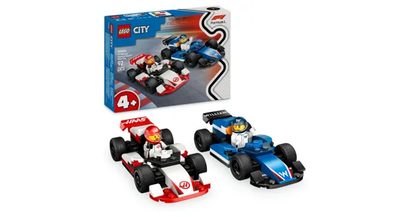 LEGO® City F1® Williams Racing und Haas F1® Rennautos (60464) ist ein Spielset, das Motorsportfans ab 4 Jahren den Nervenkitzel echter Rennen im Kinderzimmer erleben lässt. Dieses LEGO F1 Set beinhaltet 2 wirklichkeitsgetreue Formel 1® Rennautos mit Slicks und 2 Rennfahrer-Minifiguren der Teams Williams und Haas, die sich packende Rennen liefern. Entdecke auch die anderen faszinierenden LEGO Formel-1-Bausets für Kinder und Erwachsene.Dank LEGO Starter-Bauelement und Bildanleitung lässt sich das F1-Spielzeugauto aus diesem Set einfach zusammenstecken. Ausserdem sind in der LEGO Builder App – unserer digitalen Bauanleitung – Vergrösserungs- und Drehfunktionen verfügbar, die Kinder beim Bauen F1-Modellansichten aus jedem Winkel betrachten lassen.Tolle Fahrzeuge und Maschinen sind für Kinder ein alltäglicher Anblick. Die LEGO City Bausets lassen Kinder realistische Modelle näher betrachten. Ausserdem laden faszinierende Figuren zu Rollenspielen ein. Mann kann dieses Rennsportset aber auch mit anderen separat erhältlichen LEGO City Modellen kombinieren.