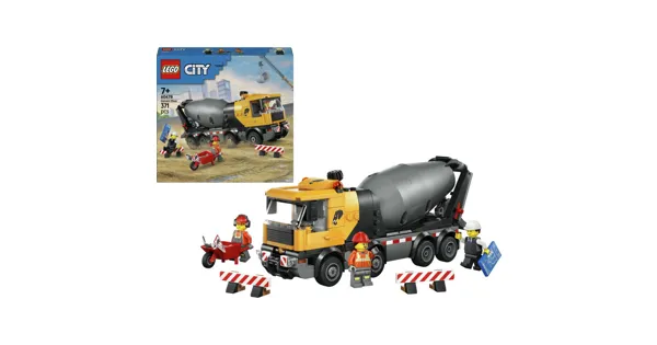 Kinder ab 7 Jahren, die gerne bauen und Fahrzeuge lieben, werden mit dem LEGO City Betonmischer (60478) richtig Spass haben. Dieses Konstruktionsspielzeug bringt eine authentische Baustelle ins Kinderzimmer: Mit 8 Gummireifen, kippbarer Fahrerkabine und einer drehbaren Trommel mit Schneckenpumpe lässt sich der „Beton“ über die verstellbare Rutsche ganz realistisch ausschütten. Zum Spielset gehören auch eine Schubkarre, Absperrungen, ein Strassenschild und 3 LEGO Minifiguren, die kreatives Rollenspiel ermöglichen. Das detailreiche LEGO Baustellenfahrzeug ist ein spannendes Motorikspielzeug und bietet Kindern viele Spielmöglichkeiten. Dieses Baustellen Spielzeug mit LEGO Fahrzeug fördert das logische Denken, die Feinmotorik und den Spass am Bauen und Konstruieren. Es lässt sich ausserdem wunderbar mit anderen LEGO City Bausets kombinieren und ist damit eine tolle Ergänzung für jede LEGO Sammlung.Ob als Geburtstagsüberraschung oder Weihnachtsgeschenk, dieses Bauset ist ein grossartiges Spielzeug ab 7 Jahren für Jungen und Mädchen. Mit der kostenlosen LEGO Builder App wird der Bauprozess interaktiv: Kinder können Modelle in 3D drehen, vergrössern und ihren Fortschritt speichern. Mit 371 Teilen ist dieses Kinder Spielzeug eine tolle Beschäftigung für Nachwuchs-Baumeister, die sich für Baustellenfahrzeuge und Technik begeistern.