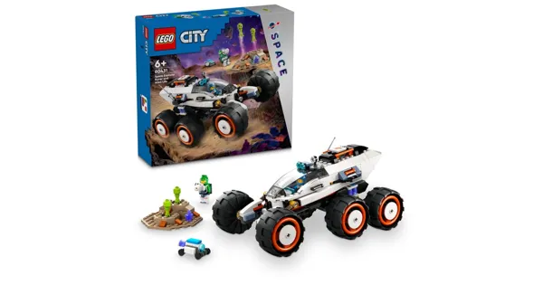 LEGO® City Weltraum-Rover mit Ausserirdischen (60431) macht das Erkunden neuer Welten zu einem echten Kinderspiel für Weltraumfans ab 6 Jahren. Der robuste Weltraum-Rover verfügt über 6 grosse Reifen und eine hochmoderne Federung für Fahrten auf einer felsigen Planetenoberfläche. Dein Kind kann die Weltraumcrew auf Fahrten zur Kartierung der Planetenoberfläche begleiten und seltsam dampfende Geysire sowie Ausserirdische entdecken. Dieses faszinierende Set beinhaltet 2 Weltraumcrew-Minifiguren sowie einen Roboter und einen Alien.Begleite deinen jungen Weltraumforscher auf ein faszinierendes Abenteuer! Lade dir die LEGO Builder App herunter und freu dich auf ein völlig neues Bauerlebnis. Die enthaltenen Funktionen lassen dein Kind 3D-Ansichten der Modelle vergrössern und drehen, seinen Baufortschritt verfolgen und neue LEGO Bausets erkunden.LEGO City Weltraumspielzeuge sind tolle Geschenke zu jedem Anlass und beinhalten wirklichkeitsgetreue Fahrzeuge, detailreiche Bauwerke und faszinierende Figuren, die Fantasie und Wirklichkeit zu einem fantasievollen Spielerlebnis ohne Limits verschmelzen. Für weitere spannende Abenteuer kann dein Kind dieses Weltraumforschermodell mit anderen separat erhältlichen LEGO City Weltraum-Sets kombinieren.