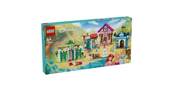 LEGO® Disney Princess: Disney Prinzessinnen Abenteuermarkt (43246) ist ein Bau- und Spielset, das Disney Princess Fans und Kinder ab 6 Jahren begeistern und lange beschäftigen wird. Die Box beinhaltet 4 baubare Spielzeuggebäude. Über dem Restaurant befindet sich ein kleines Staufach, und es gibt auch ein kleines Modell mit Blumentopf, Bank und Springbrunnen. Auch die LEGO Disney Spielfiguren Tiana, Aurora, Cinderella und Arielle sowie 2 Ringe zum Sammeln mit 4 beliebig austauschbaren Verzierungen laden zum Spielen ein. Kinder können mit all den fantasievollen Elementen für Rollenspiele viele Geschichten auf dem Markt und eigene neue Abenteuer darstellen.Dieses Disney Bau- und Spielset ist ein tolles Geschenk, das Kinder selbstbewusst und kreativ spielen lässt. Kinder und Erwachsene werden von den Details in den verschiedenen Häusern begeistert sein. Die Farben passen jeweils zu den Gewändern der Figuren. Darüber hinaus bietet die LEGO Builder App ein ebenso einfaches wie intuitives Bauerlebnis. Kinder können 3D-Modellansichten vergrössern und drehen, Sets speichern und ihren Baufortschritt verfolgen.