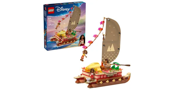 LEGO® Disney Vaianas Abenteuerfloss (43270) ist ein Bau- und Spielset mit einem coolen Modell für junge Geschichtenerzähler ab 6 Jahren. Das Zweirumpfboot aus diesem Bauset hat ein bedrucktes Stoffsegel, ein lei hulu-Seil, um die Windrichtung festzustellen, ein abnehmbares Oberdeck mit Wohnbereich unter Deck sowie ein kleines Feuer und Schlafplätze an Deck. Jede Menge faszinierende Elemente laden sofort zum Spielen ein, genau wie die 3 LEGO ǀ Disney Spielfiguren Vaiana, die Schiffsbauerin Loto und der Ruderer Moni (der gerne Geschichten erzählt) und das LEGO ǀ Disney Schwein Pua.Dieses Bau- und Spielset lässt Kinder, die Abenteuer lieben und gern fantasievoll spielen, ganz spielerisch Selbstvertrauen entwickeln. Man kann dieses Modell auch wunderbar mit anderen separat erhältlichen LEGO Bausets für Kinder und LEGO ǀ Disney Bauspielzeugen kombinieren. Ausserdem bietet die LEGO Builder App ein ebenso leichtes wie intuitives Bauerlebnis. In der App können Kinder 3D-Ansichten der Modelle vergrössern und drehen, Sets speichern und den Baufortschritt verfolgen.