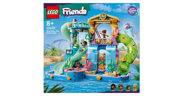 Der LEGO Friends Heartlake City Wasserpark (42630) bietet Mädchen und Jungen ab 8 Jahren jede Menge Spielspass. Mit 3 Spielfiguren, einer Mikrofigur und viel Zubehör lädt dieses bunte LEGO Friends Set zu kreativen Geschichten ein - mitten im Heartlake City Wasserpark.Kinder können Leo, Alba, Aliya und Sara beim Spielen begleiten: im kreisenden Whirlpool, auf der Korkenzieher-, Röhren- oder Wasserfallrutsche. Der Wasserfall lässt sich per Hebel aktivieren, um Boote hindurchzuschicken. Auch Wasserkanonen mit „Wassersteinchen“ sorgen für Action. Der LEGO Wasserpark steckt voller Details wie Dusche, Umkleide, Schliessfächer und Snacks - für realistische Rollenspiele und langanhaltende Beschäftigung. Das vielseitige Bauset bietet viel Raum für Fantasie und eignet sich hervorragend als Spielzeug für Mädchen und Jungen, die gerne bauen und spielen.Dieses LEGO ab 8 Jahren Set kombiniert kreative Gestaltung mit typischem Modellbau-Spass. Ein tolles Mädchen Spielzeug für Fans von LEGO Friends, das sich auch hervorragend als Geschenk eignet - ob zum Geburtstag oder als Ergänzung der eigenen Sammlung. Mit der LEGO Builder App wird der Aufbau noch einfacher und interaktiver.