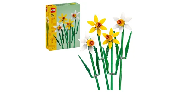 Diese Narzissen (40747) verblühen nie und sind ein tolles Geschenk zu besonderen Anlässen. Das Set für Jungen und Mädchen ab 8 Jahren sowie für erwachsene Blumenfreunde beinhaltet 4 pastellfarbene Blüten. Der baubare Blumenstrauss besteht aus 2 gelben und 2 weissen Narzissen mit grünen Stängeln und verstellbaren Blättern, die sich individuell verteilen lassen. Der fertige Blumenstrauss kann allein aufgestellt oder mit anderen separat erhältlichen LEGO Blumen zu einem grösseren und bunteren Bukett kombiniert werden.