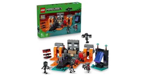 Duell mit dem Wither (21590) ist ein Bauspielzeug für Jungen und Mädchen ab 8 Jahren, das Minecraft Spieler zu vielen Rollenspielen einlädt. Kinder begleiten den Karmesinkrieger auf spannende Abenteuer in den Wirrwald, wo schon zwei Skelette und andere Kreaturen lauern. Dieses Minecraft Spielzeug ab 8 Jahren begeistert mit liebevollen Details und ist eine tolle Ergänzung für das Minecraft Kinderzimmer.Dieses ebenso authentische wie detailreiche Spielset beinhaltet einige Charaktere aus dem Videospiel für jede Menge Actionspass. Freu dich auf den Karmesinkrieger, zwei Witherskelette, einen Schreiter, einen Magmawürfel und einen baubaren Witherboss. Ein Netherportal und ein Schrein mit Werkbank sowie ein verborgener Wither, den Kinder mit einer Explosionsfunktion erzeugen können, erwecken das Videospiel zum Leben. Dieses Modellbau Set ist ein spannendes Projekt für alle, die kreative Minecraft Bastelsets lieben.Mit 494 Teilen und der „Gemeinsam bauen“-Funktion in der LEGO Builder App wird der Aufbau zu einem gemeinschaftlichen Erlebnis. Dieses DIY Set, das Minecraft Minifiguren enthält, ist ein cooles Gamer Geschenk und bietet stundenlangn Bauspass.