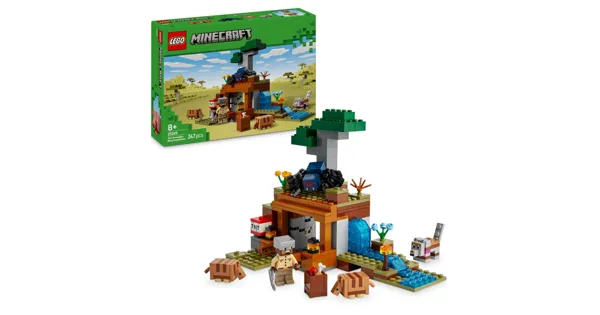 Die Expedition zur Gürteltiermine (21269) lässt junge Minecraft Spieler Abenteuer aus dem spannenden Videospiel mit den eigenen Händen nachstellen. Dieses LEGO Minecraft Spielzeug ist ein spannendes Bauset mit coolen Charakteren und faszinierenden Funktionen, die Kinder ab 8 Jahren besonders fantasievoll spielen lassen. Das Bauspielzeug stellt eine Mine im Savannen-Biom dar. Mithilfe eines Hebels kann man TNT explodieren lassen, um einen Teil des Geländes wegzusprengen und kostbares Erz freizulegen. Zum Spielen laden auch eine Höhlenspinne, ein Wolf und 2 Gürteltiere ein, die Hornschild zur Fertigung einer Wolfsrüstung liefern. Neben der Mine strömt ein kleiner Fluss, und es gibt auch einen Lavafall. Man kann das Modell mühelos umgestalten, um neue Abenteuer darzustellen. Die LEGO Builder App bietet zusätzlichen digitalen Bauspass, denn sie lässt Kinder 3D-Modellansichten auf den eigenenSmartphones vergrössern und drehen. Dieses LEGO Minecraft Spielset mit Figuren ist ein tolles Geschenk für Jungen, Mädchen und Fans des beliebten Videospiels.