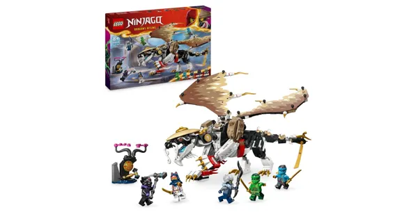 Egalt der Meisterdrache (71809) ist ein grosses Ninja-Spielset, mit dem Kinder ab 8 Jahren die spannenden Abenteuer aus der 2. Staffel der TV-Serie NINJAGO® Aufstieg der Drachen nachstellen können. Der allererste Meisterdrache in einem NINJAGO Spielset kann Beine, Flügel, Kopf und Schwanz bewegen, schwingt ein Schwert und trägt eine Scheide für ein Katana auf dem Rücken. Dieses Abenteuer-Spielset beinhaltet 5 Minifiguren: Die Ninja-Helden Lloyd, Sora und Nya, die jeweils ein Schwert tragen, sowie die beiden Bösewichte Lord Ras (mit einem Hammer) und Cinder (mit einem Schwert) lassen Kinder spannende Ninja-Abenteuer nachstellen. Auf einem kleinen Baum aus LEGO Steinen befinden sich der Hammer der Zertrümmerung und der Gong der Zertrümmerung. Um diese beiden Schätze geht es in den Duellen, die sich die 5 NINJAGO Charaktere liefern. LEGO® NINJAGO Bau- und Spielsets für Kinder beinhalten Mechs, Fahrzeuge und Tempel für spannende Rollenspiele und Abenteuer. Jedes dieser Actionspielzeuge kann auch mithilfe der LEGO Builder App gebaut werden, die dich und dein Kind auf ein ebenso einfaches wie intuitives Bauabenteuer mitnimmt.
