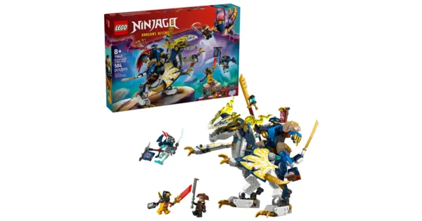 LEGO NINJAGO Rogues Mech-Drachenreiter (71843) lässt Jungen und Mädchen ab 8 Jahren Geschichten aus der 3. Staffel der TV-Serie NINJAGO Aufstieg der Drachen nachstellen. Kinder können zunächst mit dem Spielzeugmech und dem allerersten NINJAGO Roboterdrachen spielen, und die beiden Spielzeugfiguren dann zu einer megastarken Actionfigur kombinieren – Rogues Mech-Drachenreiter.Der Spielzeugmech hat bewegliche Arme und Beine sowie eine aufklappbare Brust, in die eine Minifigur und ein Schwert hineinpassen. Der Drache kann Flügel, Beine und Kiefer sowie Kopf und Schwanz bewegen und schwingt ein Schwert. Auch 4 Minifiguren laden zum Spielen ein: die beiden Ninja Rogue und Arin sowie Rox und ein böser Geisterdrachenkämpfer. Die beiden Bösewichte haben ein Banner mit einer geheimen Botschaft, die nur mit Arins Enthüllungsklinge entschlüsselt werden kann.Kinder können die Mechs aus den beiden separat erhältlichen Sets Kais Sturmreiter-Mech (71830) und Kais Mech-Bike EVO (71783) auf dem Rücken des Drachen aus diesem Set befestigen. Die Modelle aus diesem Spielset können auch mithilfe der LEGO Builder App gebaut werden. Die App nimmt dich und dein Kind auf ein tolles Bauabenteuer mit.