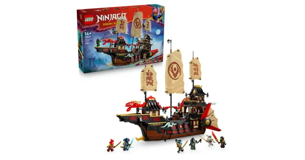 LEGO NINJAGO Der Tempel-Flugsegler (71848) ist ein imposantes Spielzeugschiff, mit dem ältere NINJAGO Fans ab 14 Jahren ihre LEGO NINJAGO Sammlung erweitern können. Das grosse detailreiche Boot ist das jüngste Modell aus einer Reihe von berühmten NINJAGO Flugseglern mit vielen coolen Details und Funktionen. Auf dem beiliegenden Ständer können Fans das Modell im Regal oder auf dem Nachttisch ausstellen.Dieses interaktive Abenteuerspielset beinhaltet alles, was Ninja-Fans brauchen, um Geschichten aus der 3. Staffel der TV-Serie NINJAGO Aufstieg der Drachen nachzustellen: ein Zahnrad zum Öffnen und Schliessen der Segel sowie abnehmbare Dächer und Böden, die Zugang zur Sushi-Bar und zur Hauptkabine bieten. Wenn man den Tisch in der Hauptkabine hochklappt, kommt ein geheimer Computer zum Vorschein.Das Set beinhaltet auch 6 Minifiguren: Zane, Cole, Wyldfyre, Nya, Rogue und den Bösewicht Zarkt. Alle Minifiguren tragen coole Ninja-Ausrüstung. Mit ihrer durchscheinenden Enthüllungsklinge können die Ninja eine geheime Karte auf dem Tisch des Kapitäns zum Vorschein holen.