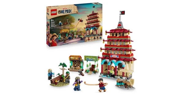 LEGO ONE PIECE - Showdown im Arlong Park (75638) ist ein actionreiches Bauset für Kinder ab 9 Jahren. Das detailreiche Modell bildet den spannenden Kampf zwischen den Strohhutpiraten und den Arlong-Piraten nach und ist ein starkes Geschenk für Mädchen und Jungen, die Anime, Abenteuer und Rollenspiele lieben. Dieses Nintendo LEGO Set bringt Bewegung in jedes Kinderzimmer.Mit dabei sind die Minifiguren Ruffy - mit austauschbaren Armverlängerungen -, Nami, Lysop, Arlong und Chu. Die Pagode kann mit einem Schlag zum Einsturz gebracht werden, und in der Schiessbude zielen Kinder mit Shootern auf bewegliche Ziele. Arlong nimmt auf seinem Thron im Haiangriffsgebäude Platz, während Chu sich an der Bude bedient. Auch kleine Details wie eine legendäre Ketchupflasche und drei Steckbriefe sorgen für Spielspass.