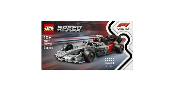 Kinder können den LEGO® Speed Champions Audi Revolut F1® Team R26 Rennwagen (77259) sammeln, bauen, ausstellen und in spannende Rennen schicken. Dieses authentische Modell des neuen Teams, das in der Saison 2026 zum ersten Mal in der Formel 1® an den Start geht, besitzt Designdetails, die den aktualisierten F1 Vorgaben entsprechen.Der Audi Revolut F1® Team R26 Rennwagen ist ein Spielzeugauto mit Cockpit, Heckflügel, authentischen Sponsorenlogos, Vorderradaufhängung und Reifen mit dem Aufdruck „Pirelli“. Zu dem Spielzeugflitzer gehört auch eine Minifigur mit Helm und im Outfit des Audi Revolut F1® Teams. Setz den Rennfahrer ins Cockpit und schick ihn in spannende Rennen.LEGO Speed Champions Bausets sind eine tolle Geschenkidee für Autofans und lassen Kinder Modelle einiger legendärer Flitzer erschaffen, unter anderem auch noch weitere separat erhältliche F1-Rennautos. Und die LEGO Builder App lässt Kinder selbstbewusst bauen und ein 3D-Modell vergrössern und drehen. Die verständliche digitale Bauanleitung zeigt auch, wie weit man mit dem Modell schon ist. Das Set besteht aus 216 Teilen.