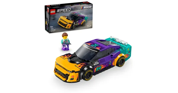 Jungen und Mädchen ab 9 Jahren sowie NASCAR Fans können sich auf den LEGO Speed Champions NASCAR Next Gen Chevrolet Camaro ZL1 (76935) freuen. Das Spielzeug-Auto zum Sammeln, Bauen, Spielen und Ausstellen kann in kräftigen Farben nachgebildet und mit Flammen verziert werden. Der rasante Flitzer ist den Originalrennautos nachempfunden, die in der NASCAR Cup Series um den Titel fahren. Das NASCAR Modell-Auto hat dieselben wirklichkeitsgetreuen Details wie die Originale: Kühlergrill, Motorhaube, Scheinwerfer, Räder und ein Interieur mit Überrollkäfig, Armaturenbrett, Gangschaltung und Feuerlöscher. Authentische Logo-Aufkleber – Camaro, Cup Series und NASCAR – vollenden den Look. Dem Spielset liegt ausserdem eine NASCAR Rennfahrer-Minifigur bei, die man für spannende Rennen ans Steuer setzen kann. LEGO Speed Champions Bauspielzeuge lassen Kinder und begeisterte Autofans Premium.-Nachbildungen einiger der legendärsten Fahrzeuge der Welt erschaffen. Jedes dieser Autos kann mithilfe der beiliegenden gedruckten Bauanleitung oder der LEGO Builder App gebaut werden. Diese App nimmt dich und dein Kind auf ein intuitives Bauabenteuer mit.