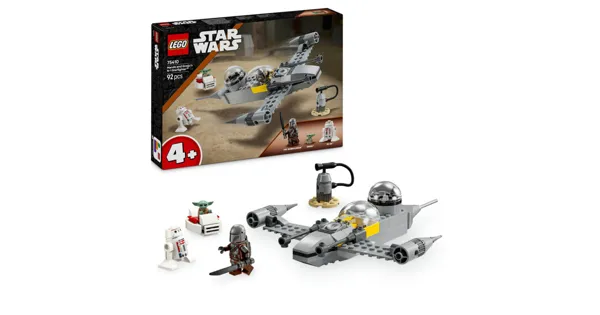 Mandos und Grogus N-1 Starfighter (75410) ist ein faszinierendes Bau- und Spielset, das Vorschulkindern beibringt, wie man mit LEGO Steinen Modelle baut und Fantasy-Abenteuer aus der 3. Staffel von Star Wars: The Mandalorian darstellt. Der N-1 Starfighter ist ein tolles Star Wars Geschenk für Jungen, Mädchen und Fans ab 4 Jahren. Ein Starter-Bauelement lässt Kinder ganz einfach das Bauen beginnen und fantasievoll spielen. Und eine baubare Zapfsäule ist ebenfalls in diesem Star Wars Bauspielzeug mit dabei. Dieses Bauset ist sehr einfach zu bauen und eine tolle Einführung für Vorschulkinder, um sich später an komplexere Sets heranzutrauen. Neben dem Modell des N-1 Starfighters beinhaltet das Fantasy Spielset auch 3 LEGO Star Wars Minifiguren: den Mandalorianer mit Dunkelschwert und Raketenrucksack, Grogu in seiner Repulsorwiege sowie den Droiden R5-D4. Setz Mando in das aufklappbare Cockpit des N-1 Starfighters. Und die Grogu Figur kann im Heck Platz nehmen. Die einfache Bildanleitung in diesem Starterset eignet sich für Kinder, die gerade erst lesen lernen. Für zusätzlichen Bauspass beinhaltet die LEGO Builder App intuitive Vergrösserungs- und Drehfunktionen, die Kinder digitale Ansichten des baubaren Sternenschiffs näher betrachten lassen. Beim Zusammenstecken des Modells dürfen Eltern oder ältere Geschwister gern ein wenig helfen.