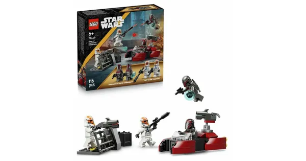 LEGO Star Wars Battle Pack – Belagerung von Mandalore (75449) bringt die Spannung aus The Clone Wars direkt ins Kinderzimmer. Dieses Bauset ist für Kinder ab 6 Jahren gedacht und bietet jede Menge Action in kompaktem Format – mit beliebten Figuren und spannenden Spielmöglichkeiten. Enthalten sind vier LEGO Minifiguren: zwei Mandalorianische Superkommandos und zwei Klonsoldaten der 332. Kompanie, bekannt als „Ahsokas Klone“. Ausgestattet mit Blasterpistolen, Raketenrucksäcken und einer Barrikade mit Geschütz, sind sie bereit für packende Gefechte. Der Speeder verfügt über einen funktionierenden Blaster, und auch die Verteidigungsposition der Superkommandos ist mit Feuerkraft ausgestattet. Dieses Spielzeug ist eine tolle Ergänzung für bestehende Sammlungen oder ein starker Einstieg in die Welt von LEGO Star Wars. Es eignet sich als Geschenk zum Geburtstag, zu Weihnachten oder einfach als Überraschung zwischendurch – für Jungen und Mädchen ab 6 Jahren, die Action lieben.Mit der LEGO Builder App wird der Bauprozess zum Kinderspiel: Kinder können 3D-Modelle drehen, vergrössern und ihren Fortschritt speichern. Insgesamt besteht das Spielset aus 116 Teilen.