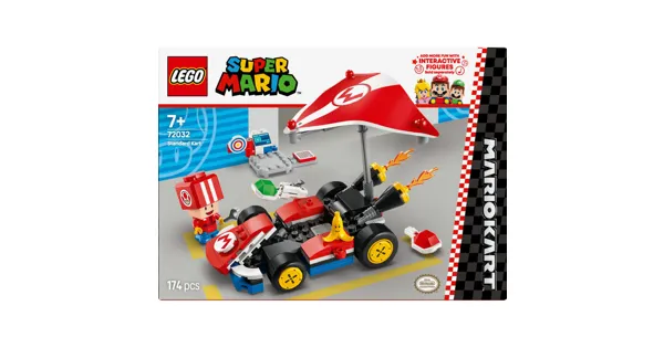 Das Standard-Kart (72032) aus diesem Spielset bietet Kindern Rennspass und lässt sie mit den Modellen driften und gleiten. Dieses Spielzeug ist ein tolles LEGO® Super Mario™ Geschenk für Jungen, Mädchen und Gamer ab 7 Jahren. Das Set beinhaltet ein baubares Standard-Kart aus Mario Kart™, eine Werkbank mit einer Zielscheibe und die Spielzeugfigur Toad (Boxencrew) in ihrem roten Boxencrew-Overall. Das Standard-Kart verfügt über einen abnehmbaren Standard-Gleiter, Räder, die den Flitzer driften lassen, und eine Katapultfunktion, um Panzer auf die Zielscheibe an der Werkbank zu schleudern. Setz LEGO® Mario™, LEGO® Luigi™ oder LEGO® Peach™ (aus den separat erhältlichen Sets 71439, 71440 und 71441) ans Steuer, um interaktiv zu spielen. Dann wirst du mit Soundeffekten für den Rennstart sowie beim Driften und Gleiten belohnt, und du kannst den Flitzer auch hupen lassen. Stampfe auf den Funktionsstein an der Werkbank, um weitere digitale Reaktionen hervorzurufen. Dieses Nintendo® Sammlerstück lässt Kinder wunderbar allein oder zusammen mit anderen spielen. Schau dir auch all die anderen separat erhältlichen LEGO Super Mario: Mario Kart Flitzer an, um Gegner für deine Rennen zu finden.