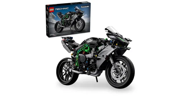 Das LEGO® Technic Kawasaki Ninja H2R Motorrad (42170) lässt Kinder ab 10 Jahren faszinierende Technologie und Technik erkunden. Mit diesem Bauset können Jungen und Mädchen eines der schnellsten Serienmotorräder der Welt – die Kawasaki Ninja H2R – detailgetreu nachbilden. Das Modell im Massstab 1:8 ist ein tolles Geschenk für Kinder und verfügt über eine Lenkung, Federbeine, ein 2-Gang-Getriebe, einen Viertakt-Reihenvierzylinder und einen Kompressor. Die spezielle Windschutzscheibe ist besonders verziert, und auf beiden Seiten des Benzintanks prangt das Kawasaki-Logo. Dein Kind wird grosse Freude daran haben, die Details nachzubilden und mit den diversen Funktionen zu spielen. Und mithilfe des Ständers kann das Modell dann voller Stolz ausgestellt werden. LEGO Technic Bausets für Kinder überzeugen durch realistische Details, die jungen LEGO Baumeisterinnen und Baumeistern technische Konzepte auf verständliche Weise näherbringen. Und die LEGO Builder App nimmt dein Kind auf ein intuitives Bauabenteuer mit. Die App lässt dein Kind digitale 3D-Modellansichten vergrössern und drehen, seine Sets speichern und seinen Baufortschritt verfolgen.