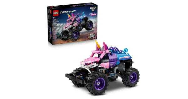 Dieser Monstertruck Spielzeug mit Rückziehmotor lässt Jungen und Mädchen ab 7 Jahren den spektakulären Actionspass des Monster Jam nachspielen. Benutze die coole Rückziehfunktion, um den Sparkle Smash (42220) losbrausen und die spektakulären Stunts legendärer Monster Truck Spielzeug-Helden vorführen zu lassen. Genau wie das Original verfügt auch dieser detailgetreue LEGO Technic Monstertruck über authentische Elemente, von funkelnden Sternen bis zum ikonischen Einhorn-Horn. Das actiongeladene Bauset ist eine tolle Geschenkidee für Jungen und Mädchen ab 7 Jahren, die LEGO Technic Monster Jam mögen. Die Fahrzeuge aus den LEGO Technic Sets vermitteln auf verständliche Weise technische Zusammenhänge für kleine Ingenieure. Die LEGO Builder App mit digitalen Anleitungen, 3D-Modellansichten und Fortschrittsanzeige macht das Bauen zum Kinderspiel. Dieses vielseitige und authentische Bauset bietet jede Menge Spielspass für Fans von LEGO Grave Digger und Monstertruck Spielzeug. Das Spielset besteht aus 243 Teilen.