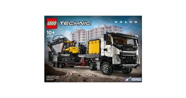 Der LEGO Technic Volvo FMX LKW mit EC230 Electric Raupenbagger (42175) ist ein Spielset aus LKW, Flachbettauflieger, Elektro-Raupenbagger und Ladestation, das Kinder 2 detailgetreue Modelle...
