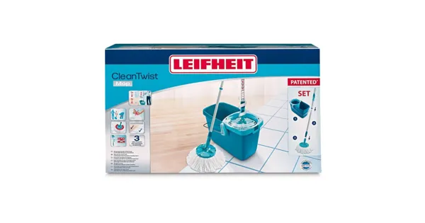 Besonders saubere Böden im Handumdrehen - mit dem Wischmop-Set CLEAN TWIST Disc Mop ErgoDas Leifheit Wischmop-Set hat eine patentierte Drill-Stiel-Mechanik, mit welcher der Wischer im Stehen ausgeschleudert werden kann. Dadurch kann eine bequeme Reinigung des Mops im Stehen und ohne Kontakt mit dem Schmutzwasser garantiert werden. Das Wischmop-Set ist Testsieger* und besteht aus einem Teleskopstiel, einem Eimer mit Schleudersieb und einem Wischmop Micro Duo! *IMTEST Testsieger, Ausgabe 02/2022