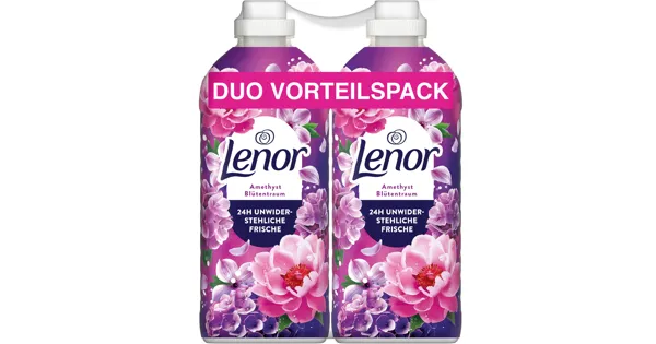 Mit dem Lenor Amethyst Blütentraum Duo Vorteilspack erhältst du 142 erfrischende Waschgänge, die deine Kleidung förmlich in ein duftendes Blumenmeer tauchen. Dieses Universalwaschmittel schützt...
