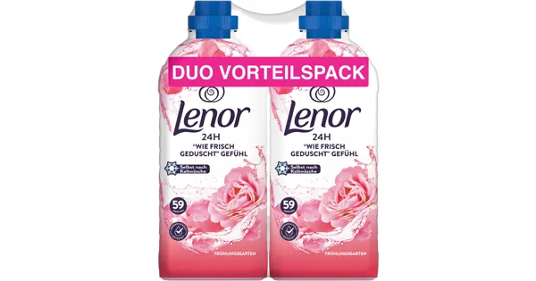 Du sehnst dich nach einem unvergleichlich frischen Wäscheerlebnis? Mit dem Lenor Weichspüler Frühlingsgarten schenkst du deiner Kleidung den Duft von blühenden Blumen und sommerlicher Frische. Der dermatologisch getestete Weichspüler sorgt auch nach kurzen und kalten Waschzyklen für ein herrlich sanftes Gefühl, das bis zu 24 Stunden anhält – ganz wie frisch geduscht! Dank der praktischen Duo-Packung mit 2 x 59 Waschgängen bist du bestens ausgestattet, um deine Wäsche langanhaltend zu pflegen und zu verwöhnen.