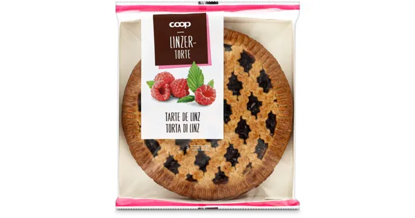 Linzertorte mit 43% Fruchtzubereitung Himbeere Die Linzertorte überzeugt mit ihrem zarten Mürbeteig und einer fruchtigen Himbeerfüllung. Hergestellt ohne künstliche Zusatzstoffe, bietet sie ein authentisches Geschmackserlebnis. Ideal für jede Kaffeetafel oder als süsser Abschluss eines gemütlichen Abends. – Zutaten: Zucker, Weissmehl (WEIZEN), HASELNÜSSE, pflanzliche Öle (Raps, Raps [ganz gehärtet]), Glucose-Fructosesirup, Himbeermarkkonzentrat 7%, Glucose, EIER*, SOJAMEHL, Olivenöl, Wasser, Feuchthaltemittel (E 420), Fruchtsaftkonzentrate (Himbeere 0,9%, Holunder), Verdickungsmittel (E 440), Zimt, Säuerungsmittel (E 330, E 331, E 333), Backtriebmittel (E 503), WEIZENGLUTEN, Himbeerkerne, Kochsalz jodiert, Aroma, Holunderextrakt, Nelken. Kann Spuren von BAUMNUSS, DINKEL, GERSTE, HAFER, KHORASAN-WEIZEN, MANDELN, MILCH, ROGGEN, SESAM enthalten. *aus Freilandhaltung. Zutaten: Zucker, Weissmehl (WEIZEN), HASELNÜSSE, pflanzliche Öle (Raps, Raps [ganz gehärtet]), Glucose-Fructosesirup, Himbeermarkkonzentrat 7%, Glucose, EIER*, SOJAMEHL, Olivenöl, Wasser, Feuchthaltemittel (E 420), Fruchtsaftkonzentrate (Himbeere 0,9%, Holunder), Verdickungsmittel (E 440), Zimt, Säuerungsmittel (E 330, E 331, E 333), Backtriebmittel (E 503), WEIZENGLUTEN, Himbeerkerne, Kochsalz jodiert, Aroma, Holunderextrakt, Nelken. Kann Spuren von BAUMNUSS, DINKEL, GERSTE, HAFER, KHORASAN-WEIZEN, MANDELN, MILCH, ROGGEN, SESAM enthalten. *aus Freilandhaltung.