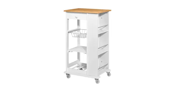 4 leichtlaufende Lenkrollen, davon 2 mit Stoppfunktion , Front mit ausziehbarem Metallkorb, Ablagefläche und Weinregal , Pro Stück