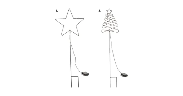 Erdspiess mit 2 Spitzen für sicheren Halt , Spritzwassergeschützt (IP44) , Zuleitung 0,6 m , Stern: 30 energiesparende und langlebige LEDs mit warmweissem Licht; Höhe (ohne Erdspiess): 42 cm , Tannenbaum: 65 energiesparende und langlebige LEDs mit warmweissem Licht; Höhe (ohne Erdspiess): 48 cm , Pro Stück