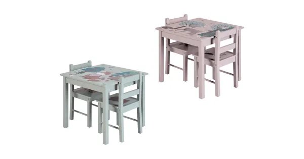 Masse Tisch (L x B x H): 60 x 60 x 50 cm , Masse Stühle (B x H x T): je 30 x 55 x 30 cm , Max. Belastung: 35 kg (je Stuhl)/50 kg (Tisch) , Pro Set