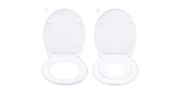 Aus hochwertigem Duroplast , Passend für fast alle handelsüblichen WCs , WC-Sitz; Masse (B x T x H): 37,2 x 45 x 5,3 cm , Familien-WC-Sitz: Masse (B x T x H): 37,5 x 45 x 5,3 cm , Pro Stück