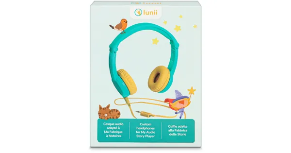 Verstellbarer und faltbarer Kopfhörer für Kinder, Doppelklinkenstecker zum Hören für zwei Personen, keine Wellen, begrenzte Lautstärke: 85dB, abnehmbares Kabel, widerstandsfähig und bequem, mit Ohrpolstern, ideal um Mein Geschichtenerzähler zu geniessen, mit Aufklebern personalisierbar.