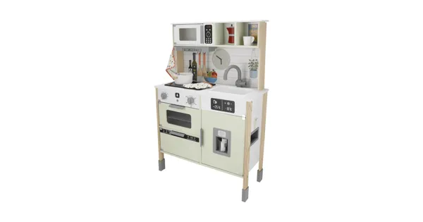 Kann auf 3 verschiedene Höhen eingestellt werden (97/101/103 cm) , 2 beleuchtete Kochfelder mit Koch- und Bratgeräuschen , Masse (B x H x T): 66 x 97 x 30 cm , Pro Stück