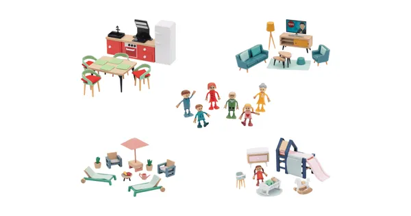 Aus Echtholz und robustem Kunststoff , Altersempfehlung: ab 3 Jahren , Pro Set