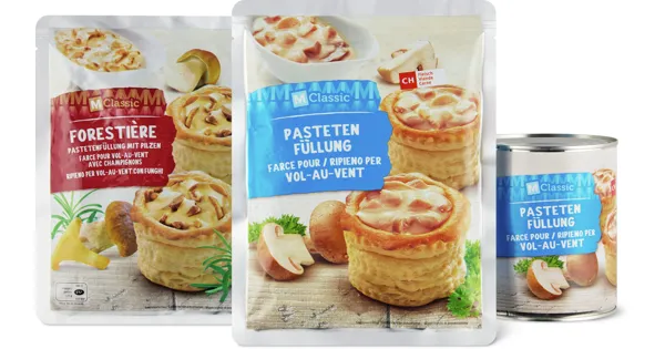 Ab 2 Stück, erhältlich in diversen Sorten und Grössen, z.B. Pastetenfüllung, 500 g, 3.84 statt 4.80, 100 g = 0.77, Angebot gilt nur vom 19.3. bis 25.3.2026, solange Vorrat.