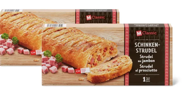 Duo-Pack, tiefgekühlt, in Mehrfach- oder Sonderpackungen, z.B. Schinkenstrudel, 2 x 420 g, 7.70 statt 11.–, 100 g = 0.92, Angebot gilt nur vom 7.10. bis 13.10.2025, solange Vorrat.