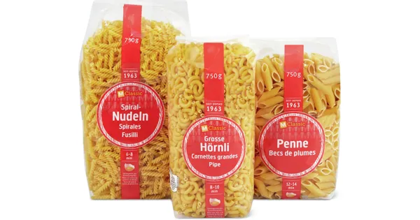 Erhältlich in diversen Sorten, in Sonderpackungen, 750 g oder 1125 g, z.B. Hörnli, 750 g, 1.30 statt 2.63, 100 g = 0.17, Angebot gilt nur vom 20.1. bis 26.1.2026, solange Vorrat.