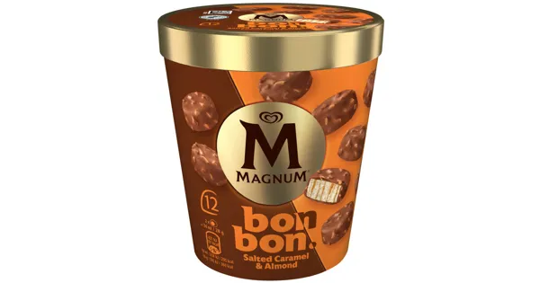 Vanillerahmglace mit gesalzener Caramelsauce (18%), umhüllt von Milchschokolade (31%) mit Mandeln (2,5%) – Zutaten: Zucker, entrahmte MILCH, RAHM (9,5%), Glukose-Fruktose-Sirup, Kakaobutter¹, konzentrierte MAGERMILCH, MAGERMILCHPULVER, Glukosesirup, Trinkwasser, BUTTERFETT, MANDELN, Kakaomasse¹, Kokosfett, karamellisierter Zucker, Emulgatoren (E471, Lecithine), Meersalz, Stabilisatoren (E407, E412, E410, E417), natürliches Vanillearoma¹, natürliches Vanillearoma. Kann WEIZEN, EI, SOJA, HASELNUSS, WALNUSS enthalten. ¹Rainforest Alliance-zertifiziert. Zutaten: Zucker, entrahmte MILCH, RAHM (9,5%), Glukose-Fruktose-Sirup, Kakaobutter¹, konzentrierte MAGERMILCH, MAGERMILCHPULVER, Glukosesirup, Trinkwasser, BUTTERFETT, MANDELN, Kakaomasse¹, Kokosfett, karamellisierter Zucker, Emulgatoren (E471, Lecithine), Meersalz, Stabilisatoren (E407, E412, E410, E417), natürliches Vanillearoma¹, natürliches Vanillearoma. Kann WEIZEN, EI, SOJA, HASELNUSS, WALNUSS enthalten. ¹Rainforest Alliance-zertifiziert.