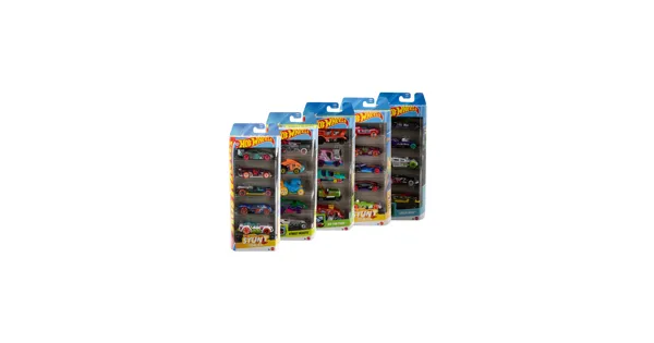Gebt Gas bei jeder Hot Wheels Sammlung mit einem 5er-Pack verschiedener Fahrzeuge im Massstab 1:64. Jedes Metallspielzeugauto oder -lastwagen verfügt über authentische Details und auffällige Designs, die Kinder und Sammler gleichermassen begeistern. Diese Packs haben jeweils ein spezielles Thema, das sowohl Sammler als auch Autoenthusiasten anspricht. Die Fahrzeuge eignen sich perfekt zum Spielen oder Ausstellen – Kinder und Sammler werden sie alle haben wollen. Jeder Pack wird einzeln verkauft. Solange der Vorrat reicht. Stile, Farben und Dekorationen können variieren.