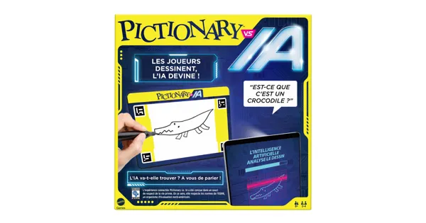 Préparez-vous à une soirée jeux sous le signe de l’innovation technologique avec Pictionary® vs IA. Tout ce qui a fait le succès du jeu Pictionary atteint une nouvelle dimension dans cette version où les dessins de joueurs humains se mesurent au pouvoir de déduction de l’intelligence artificielle. C’est en prédisant quels dessins l’IA interprétera correctement que les joueurs gagnent des points. Synonyme de surprises et de moments de rire, Pictionary vs IA est le jeu de société idéal pour une soirée en famille! Attention : le produit est disponible exclusivement en français !