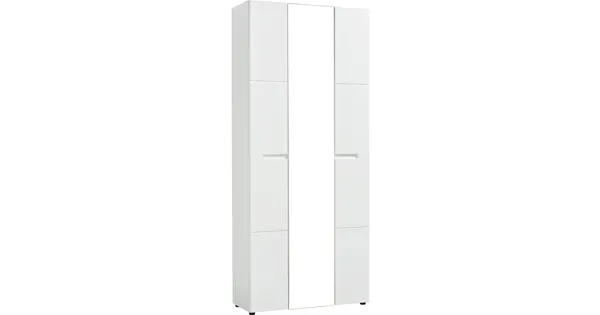 Der schlichte Mehrzweckschrank Mailand aus Dekor weiss ist ein Alleskönner. Er bietet mit seiner Höhe von über 2 Meter ausreichend Platz für Kleidung, Schuhe, Spielsachen etc. Ob in der Garderobe, Schlaf- oder Kinderzimmer, sogar im Wohnraum integriert sich dieser geräumige Schrank dank seines zeitlosen Designs bestens. Er besteht aus drei Drehtüren, wobei die mittlere mit einem Spiegel versehen ist. Zudem überrascht der Schrank mit einer ausziehbaren Kleiderstange und zwei fixen sowie neun variablen Einlegeböden. Hole dir diesen tollen Ordnungshelfer nach Hause und räume auf!