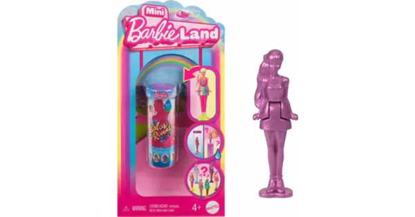 Entdecke Mini Barbieland, wo unsere liebsten Barbie-Puppen, Fahrzeuge und Spielsets in winziger Grösse erscheinen! Wir haben die ikonischsten Artikel aus unserer Barbie Reveal Kollektion verkleinert. Kinder können die Mini-Verpackung öffnen und die Überraschungen von Color Reveal (Puppe, die unter der Farbschicht zum Vorschein kommt), Cutie Reveal (abnehmbarer Kostümkopf) und Barbie Pop (Schleimspiel) geniessen. Hinweis: Der Artikel ist assortiert – die Auswahl erfolgt zufällig. Eine bestimmte Variante kann nicht gewählt werden