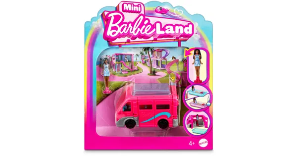 Willkommen in der Welt der Barbie-Puppe im Mini BarbieLand – ein Ort für grosse Vorstellungskraft und Träume im Miniformat! Diese Mini-Auto-Sets für traumhafte Fahrten mit Überraschungen sind bereit zum Spielen oder Präsentieren. Diese Nachbildung des legendären Barbie DreamCamper in kleinerem Massstab umfasst funktionierende Türen und einen Pool mit Farbwechsel! Das Set enthält eine bezaubernd gestylte, ca. 4 cm grosse Barbie-Puppe, die ihre Taille beugen kann, sodass sie sitzen und zu grossen Abenteuern im Mini BarbieLand fahren kann. Fans ab 4 Jahren werden es nicht erwarten können, all diese niedlichen Fahrzeuge zu sammeln, um ihre eigene Miniwelt aufzubauen! Alle Artikel separat erhältlich. Abweichungen in Farbe und Gestaltung vorbehalten.